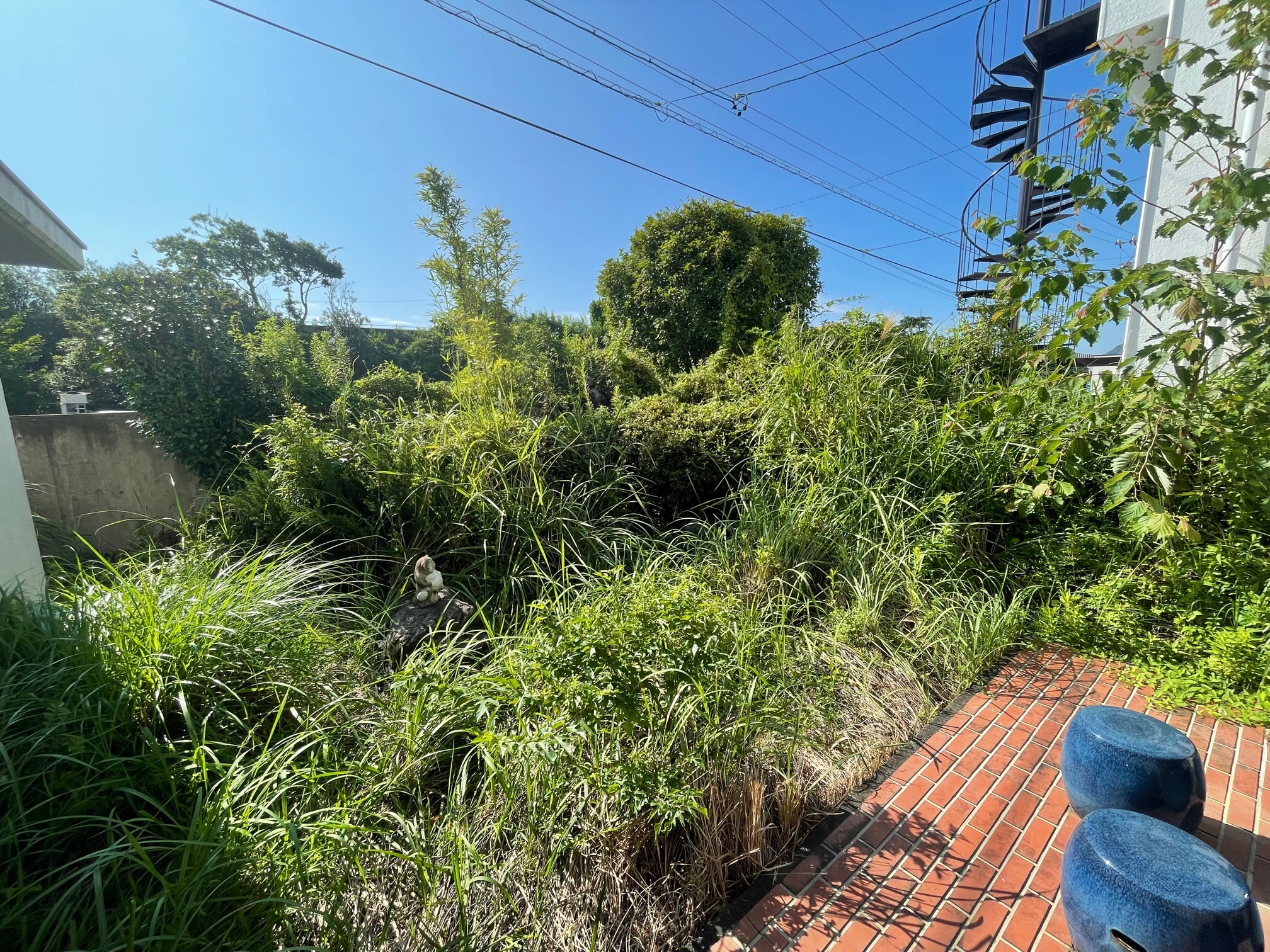 空き家で放置されていたお庭を手入れしました。隠れていた景石や灯篭が顔を出しました。